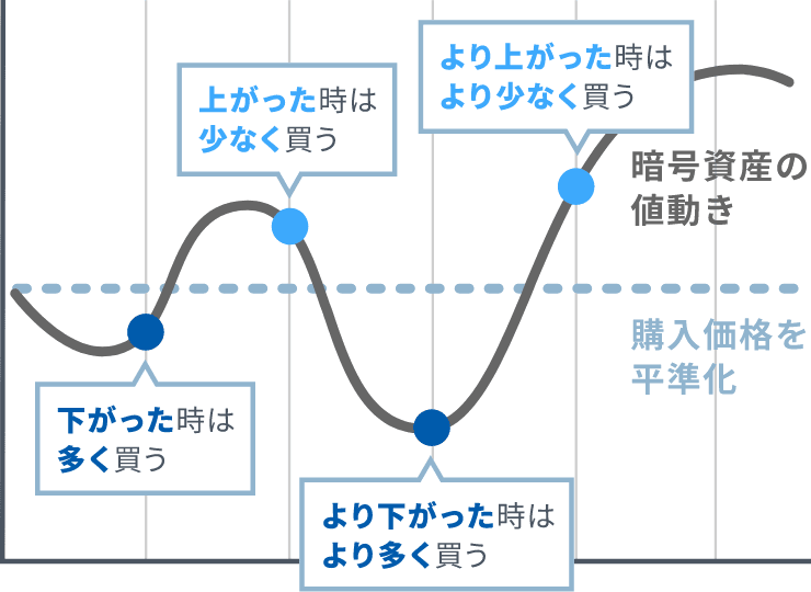 つみたて暗号資産では、期間をずらして少しずつ購入していくことで購入価格を平準化することができます。