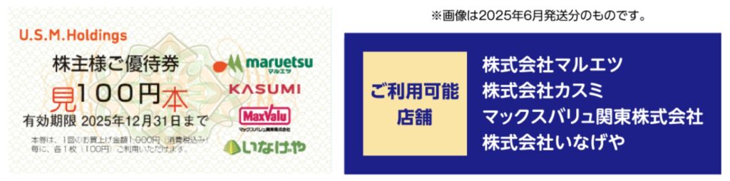 | ユナイテッド・スーパーマーケット(3222) | 優待券(3,000円分×年2回)または食品 | 96,000 | 1.62% | 6.2% | 2月・8月 |