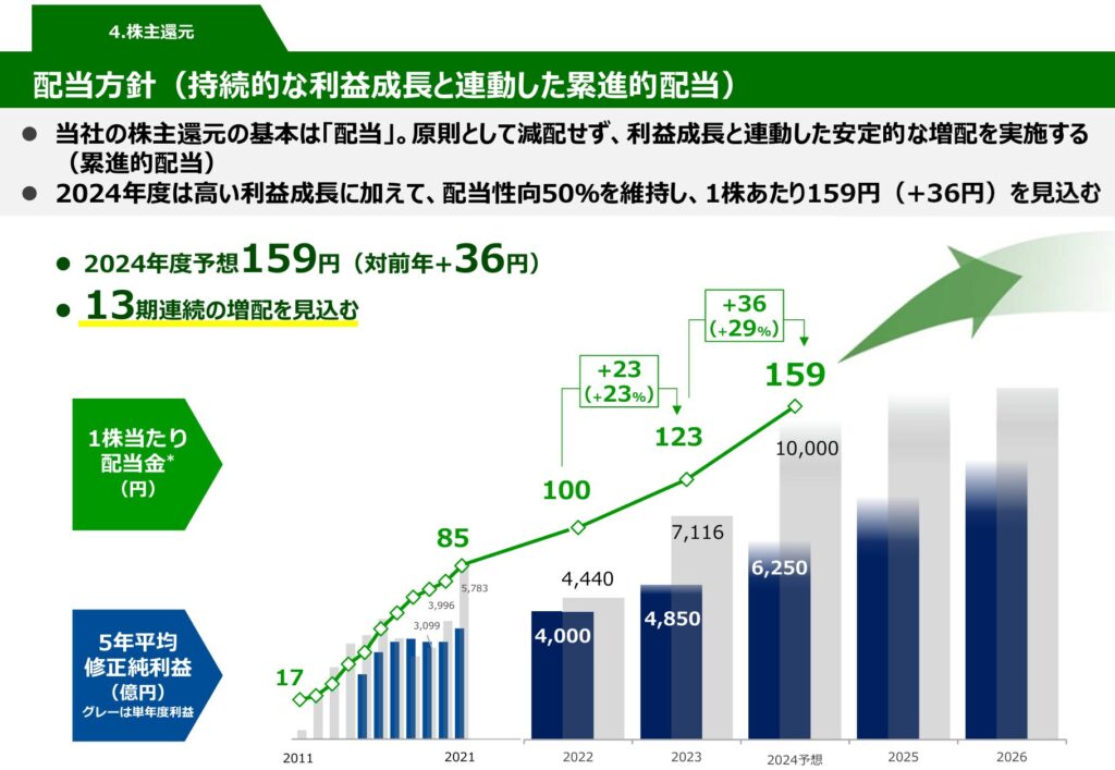 そして記念配当を除いた普通配では14期連続増配の予定です。安定した収益構造と事業基盤があるからこそ実現できることです。