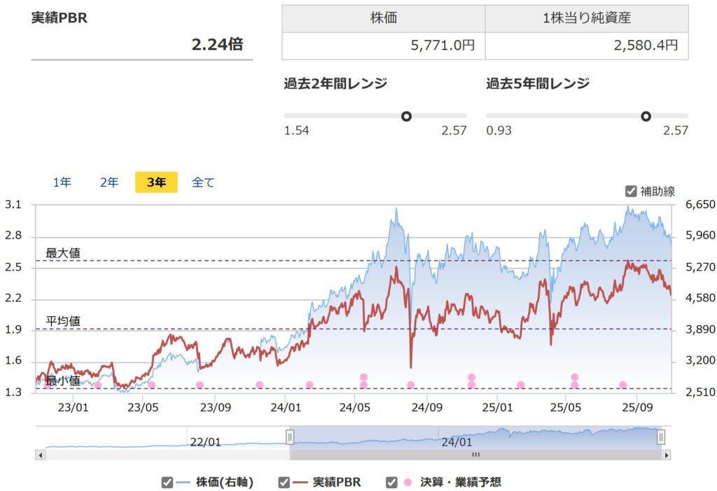 この銘柄は過去数年で株価は3倍に上昇、株式分割も実施しています。そして直近では株価6,000円ほどですので、もう少し上昇すれば再度の株式分割もありうるでしょう。